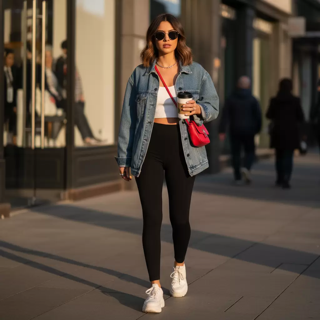Gợi ý phối đồ đi chơi với quần legging theo phong cách năng động