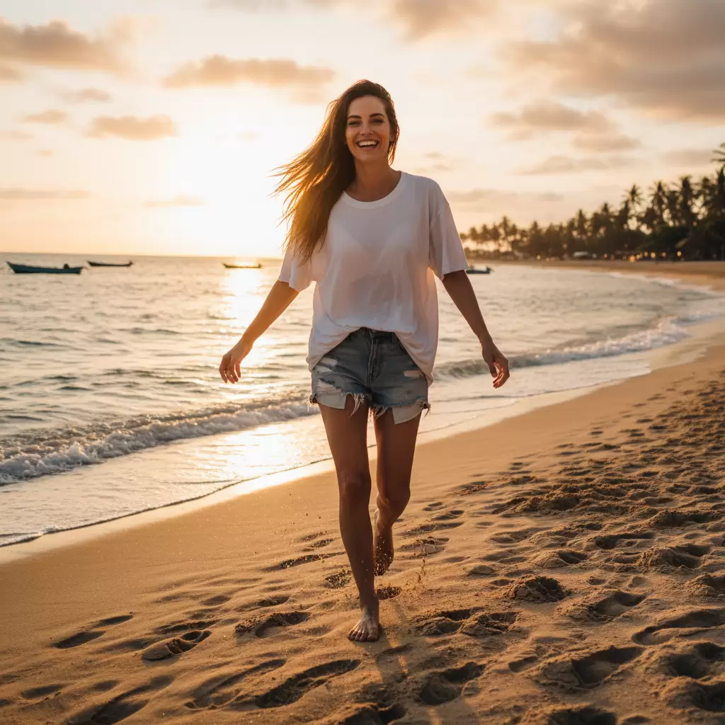 Nếu bạn yêu thích phong cách thể thao và muốn thoải mái chạy nhảy, chơi bóng chuyền bãi biển hay chèo thuyền kayak, thì combo áo thun và quần short đi biển là lựa chọn không thể bỏ qua. Quần short đi biển thường được làm từ chất liệu nilon hoặc polyester nhanh khô, rất phù hợp khi kết hợp cùng áo thun mỏng. Set đồ này mang lại vẻ ngoài khỏe khoắn, năng động cho cả nam và nữ. Bạn có thể sơ vin vạt trước của áo thun vào quần để trông gọn gàng và thời thượng hơn.