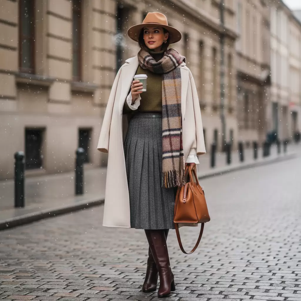 Sai lầm phổ biến khiến set đồ trở nên đồ sộ là chọn quá nhiều lớp vải dày và thô cứng cùng một lúc. Thay vì mặc hai chiếc áo len dày, bạn hãy ưu tiên các chất liệu cao cấp có khả năng giữ ấm tốt nhưng trọng lượng nhẹ và độ mỏng vừa phải như len cashmere, len merino hoặc vải nỉ mỏng. Những chất liệu này không chỉ mang lại sự sang trọng mà còn giúp các lớp áo chồng lên nhau một cách êm ái, không tạo ra những khoảng hở mất cân đối. Ngoài ra, việc kết hợp các bề mặt chất liệu khác nhau như da, denim và len cũng tạo nên chiều sâu thị giác, giúp bộ đồ trông thú vị hơn mà vẫn đảm bảo sự gọn gàng.